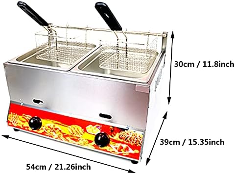 Multi-function Gas Deep Fryer, 22L Compact Dual Tank Gas Fryer, Freestanding Temperature Control, Adjustable Firepower, Removable And Washable Stainless Steel